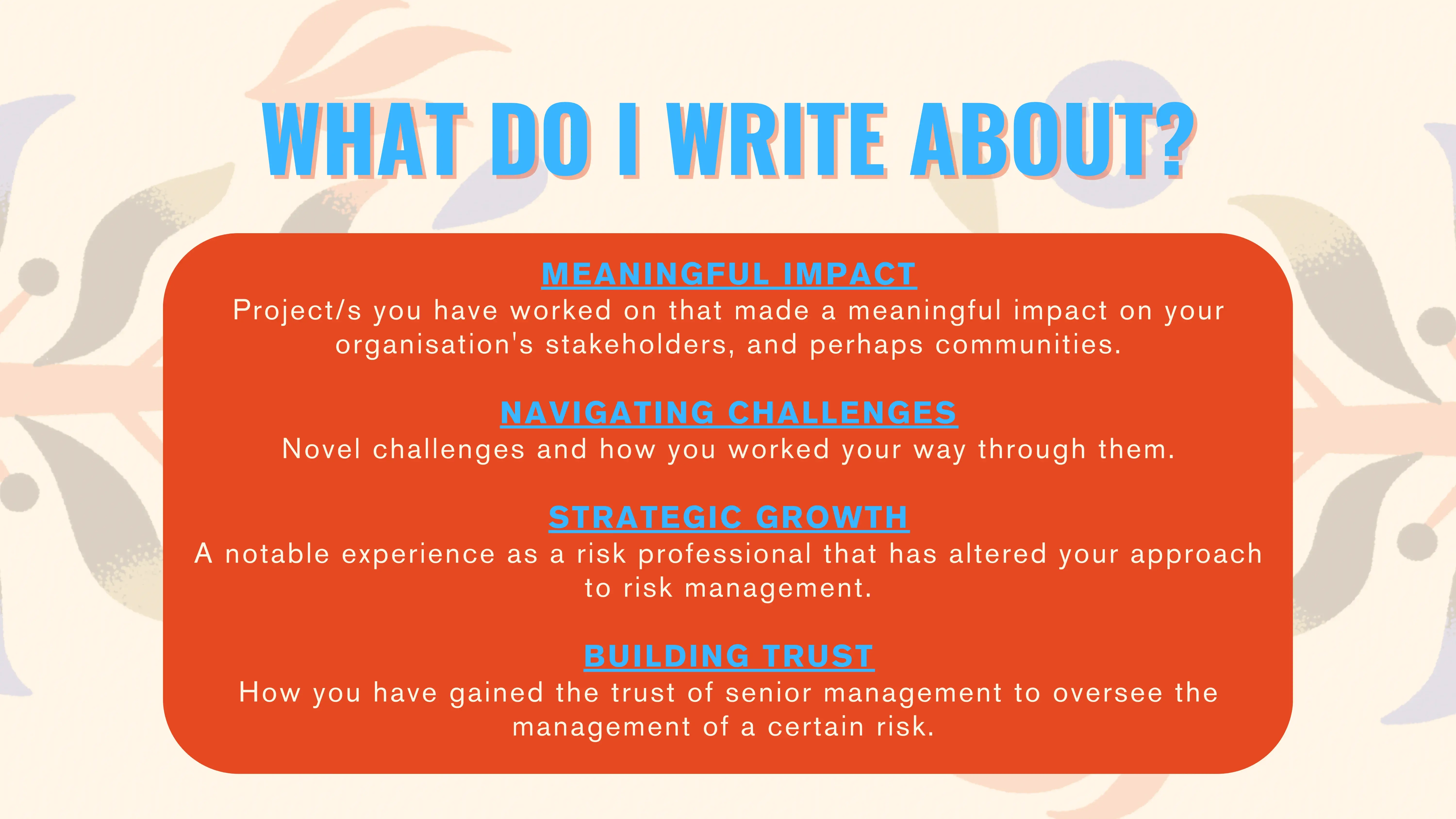 I have 5+ years of experience as a risk professional but would love to share my career journey with an audience. Can I still apply for the challenge?